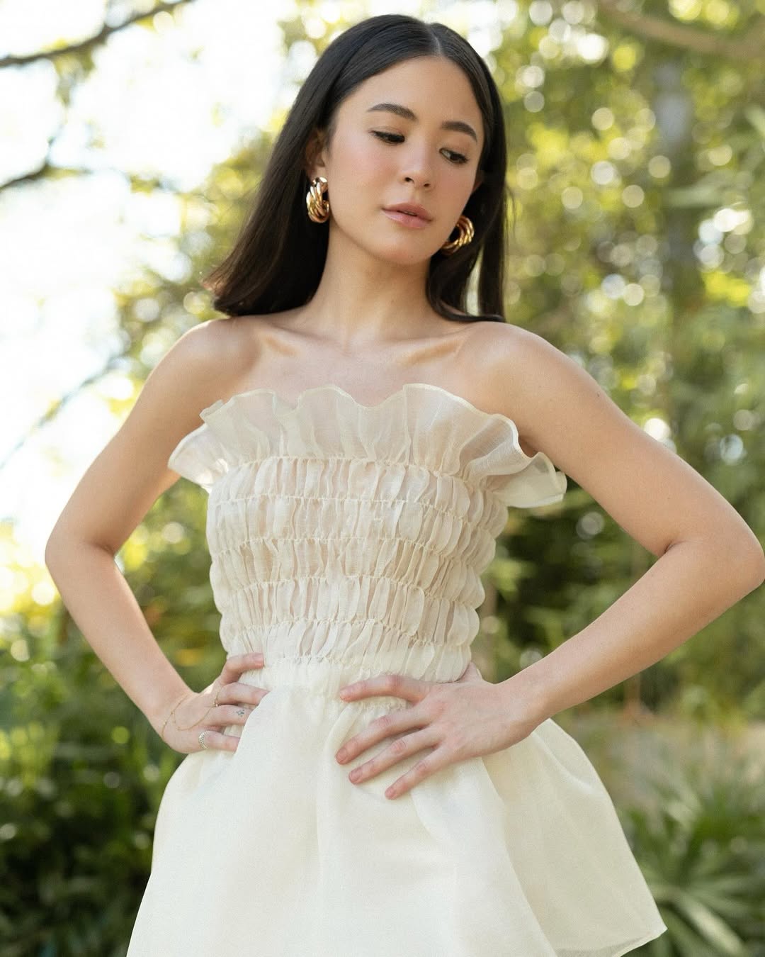 Made from a smocked Pina Cocoon this top has an apron-style silhouette that's bordered with voluminous ruffles.