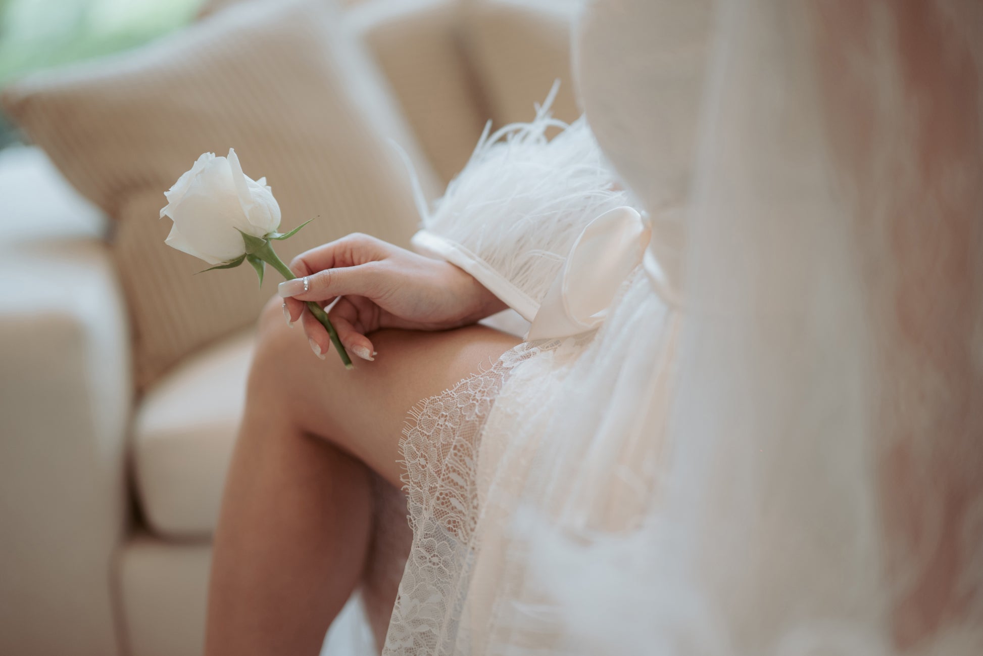 long sleeves with faux feather trims